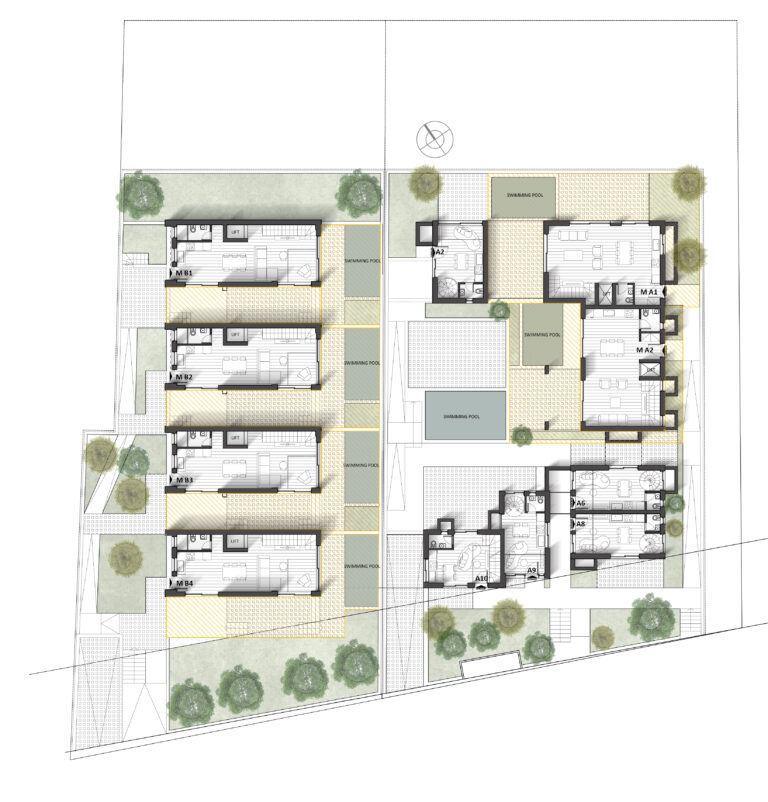 | Availability | Apartment | Level | Interior Space (sqm) | Balcony (sqm) | Garden (sqm) | Bedroom | Bathroom | WC | Parking | Access to Swimming Pool |